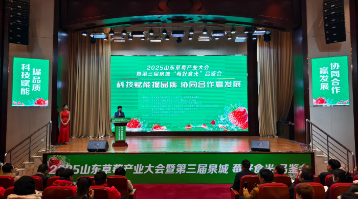 2025年1月10日至11日,由山東農(nóng)學(xué)會(huì)草莓專業(yè)委員會(huì)、山東廣播電視臺(tái)農(nóng)科頻道、濟(jì)南市農(nóng)業(yè)技術(shù)推廣服務(wù)中心共同主辦的2025年山東草莓產(chǎn)業(yè)大會(huì)暨第三屆中國•泉城“莓好食光”品鑒會(huì)在濟(jì)南召開。本次大會(huì)以“科技賦能提品質(zhì) 協(xié)同合作贏發(fā)展”為主題,旨在搭建草莓生產(chǎn)全產(chǎn)業(yè)鏈的交流與交易平臺(tái),探討草莓產(chǎn)業(yè)前沿品種、技術(shù)及市場發(fā)展趨勢(shì)。山東省農(nóng)業(yè)農(nóng)村廳黨組成員、副廳長楊武杰、濟(jì)南市農(nóng)業(yè)農(nóng)村局黨組書記、局長孟帥、山東農(nóng)學(xué)會(huì)秘書長張希軍等出席了會(huì)議。來自全國各地的草莓專業(yè)合作社、種植基地、采購企業(yè)、農(nóng)資及設(shè)施企業(yè)負(fù)責(zé)人等300余人參加了此次盛會(huì)。