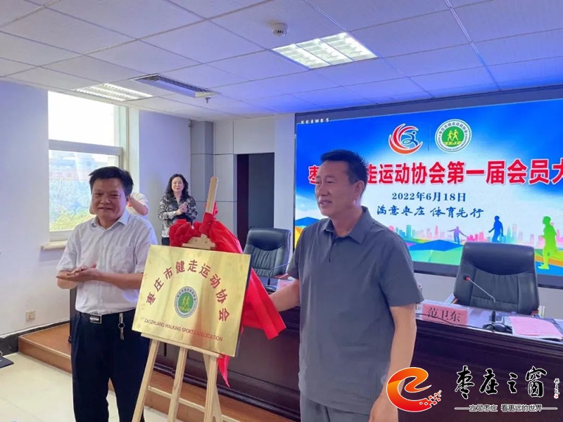 6月18日上午,棗莊市健走運動協(xié)會成立。市體育局黨組成員、市競技體育發(fā)展中心主任范衛(wèi)東,市民政局副局長賈永法出席協(xié)會第一屆會員代表大會、并為協(xié)會成立揭牌。