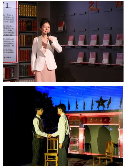 旅游管理系黨支部副書記王娟以《思想浸潤心靈 傳文脈繼往開來——習近平文化思想在浙江的溯源與實踐》為題,分享了《習近平在浙江》的讀書心得,情景劇《遺址邊的吶喊》,將思想性、藝術性及感染力高度結(jié)合,讓觀眾在情感共鳴中感受習近平文化思想的偉力。